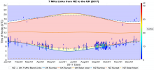 A new study by Sam Lo et al. from the Centre for Space at the University of Bath entitled "A Systematic Study of 7 MHz Greyline Propagation Using Amateur Radio Beacon Signals" was just published in the peer-reviewed journal Atmosphere. Abstract: This paper investigates 7 MHz ionospheric radio wave propagation between pairs of distant countries that simultaneously lie on the terminator. This is known as greyline propagation. Observations of amateur radio beacon transmitters recorded in the Weak Signal Propagation Reporter (WSPR) database are used to investigate the times of day that beacon signals were observed during the year 2017. The WSPR beacon network consists of thousands of automated beacon transmitters and observers distributed over the globe. The WSPR database is a very useful resource for radio science as it offers the date and time at which a propagation path was available between two radio stations, as well as their precise locations. This paper provides the first systematic study of grey-line propagation between New Zealand/Eastern Australia and UK/Europe. The study shows that communications were predominantly made from the United Kingdom (UK) to New Zealand at around both sunset and sunrise times, whereas from New Zealand to the UK, communication links occurred mainly during UK sunrise hours. The lack of observations at the UK sunset time was particularly evident during the UK summer. The same pattern was found in the observations of propagation from Eastern Australia to UK, and from New Zealand and Eastern Australia to Italy and the surrounding regions in Europe. The observed asymmetry in reception pattern could possibly be due to the increase in electromagnetic noise across Europe in the summer afternoon/evening from thunderstorms. URL: https://www.mdpi.com/2073-4433/13/8/1340